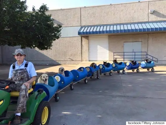 유진 보스틱은 미국 텍사스 주 포스 워스에 사는 80세 노인이다. 그의 일과는 기차를 운행하는 것이다. 사진 속 기차는 그가 직접 만든 것이다. 기차의 승객은 그가 거리에서 구조한 개들이다.
