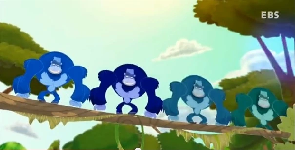 그 다음 페이지는 정글이다. 잭은 고릴라들에게도 여행을 제안한다. 고릴라들이 기차에 타자 기차가 무너진다. 만능수리공인 키라가 종이기차를 오리고 붙여서 금세 수리한다.