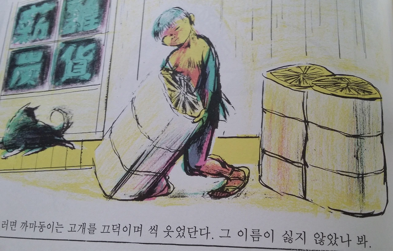 학교를 졸업하고 아이들이 그 아이를 마주치면 모두 "까마동이"라고 불렀다. "안녕, 까마동이!"