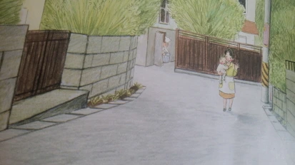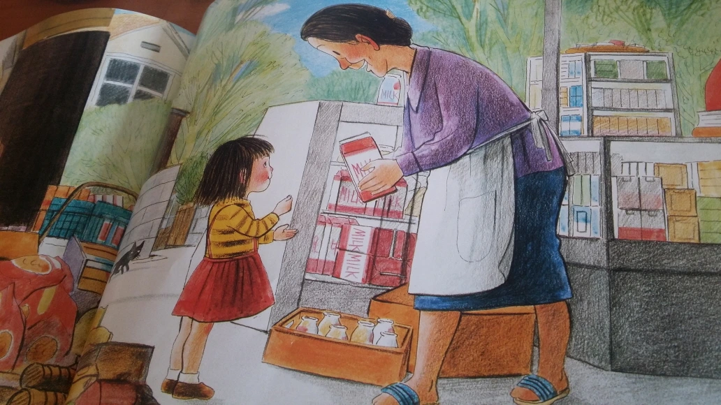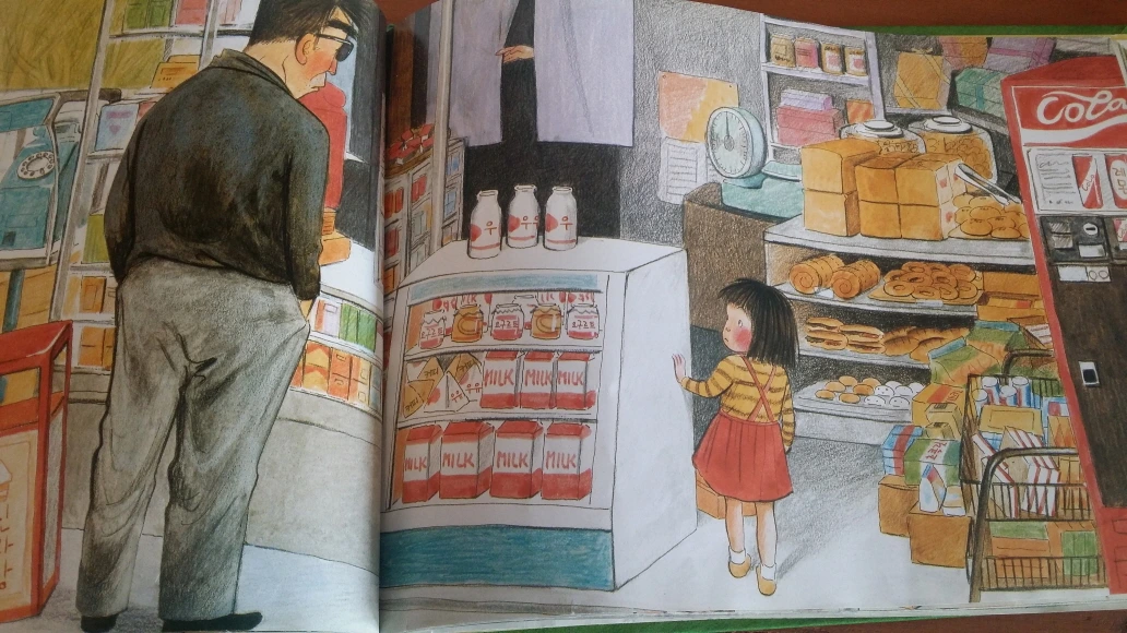 좌충우돌 가게에 도착한 후, 아이는 어른들에게 몇 번이고 뒤처진다. 겨우 우유를 사고나선 눈물이 '똑'하고 한 방울 떨어질 정도이다.
