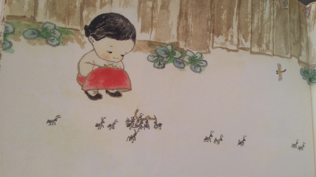 하지만 아이는 닭도 보고, 개미도 보고, 잠자리를 잡으려다가 해가 꼴딱 져 돌아간다.