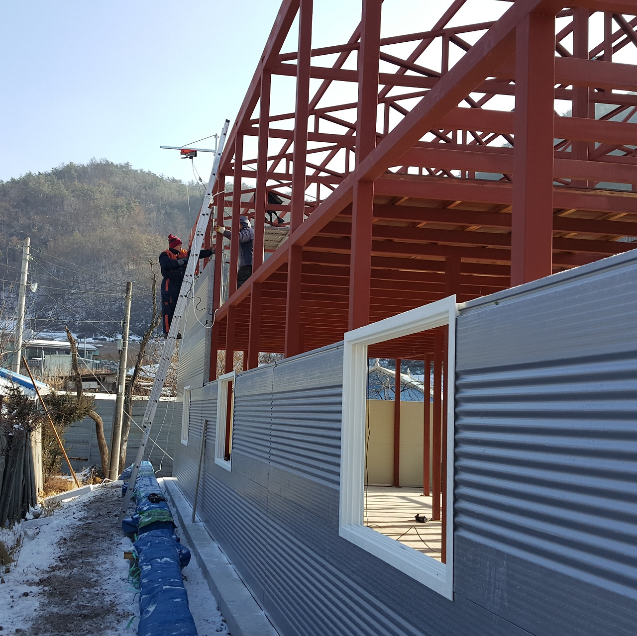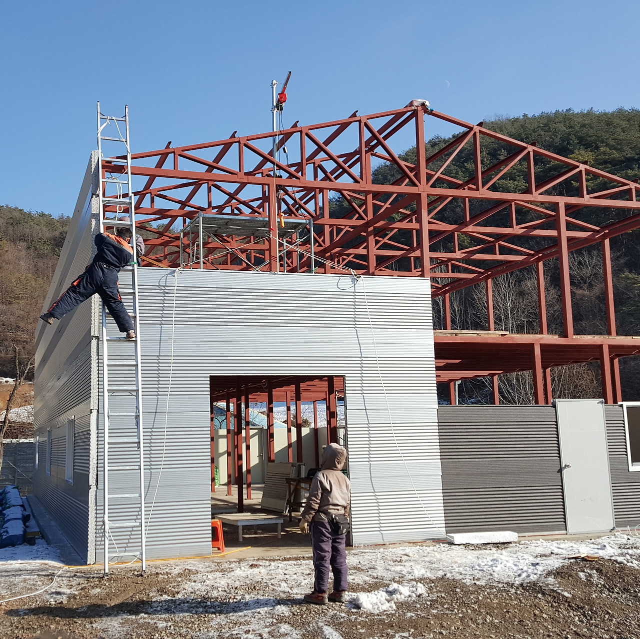 2층 골조작업과 A형 트러스 골조 작업으로 고공에서 반년 이상을 보내서 일까? 사다리를 타고 3m 이상의 높이가 무섭게 느껴지지 않았다. 그러나 패널 작업은 골조 용접 작업과는 다르다.