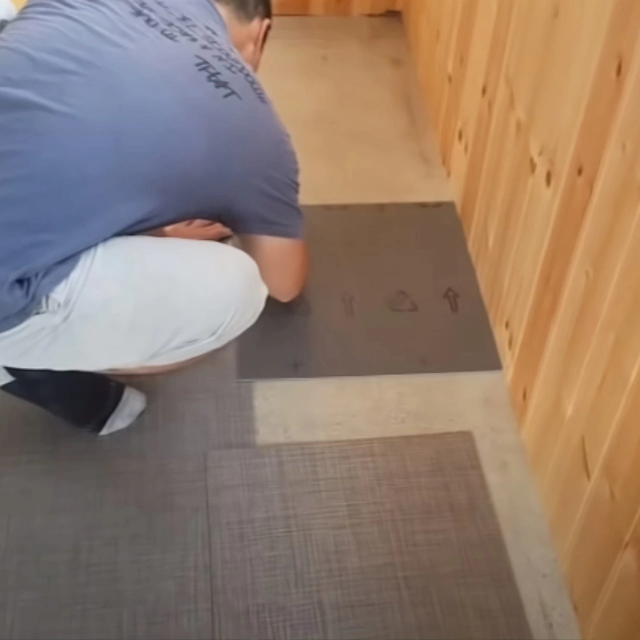 여기서도 지켜주면 좋은 것은 데코타일을 뒤집어보면 화살표 방향이 표시되어 있다. 이 방향을 지켜 시공하면 틈새를 줄일 수 있다.