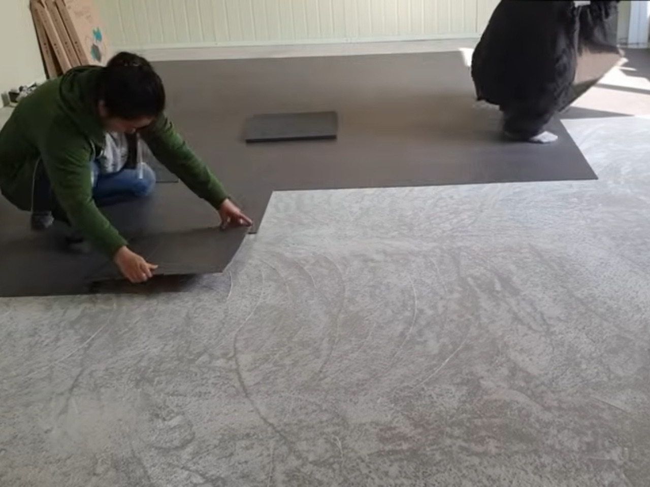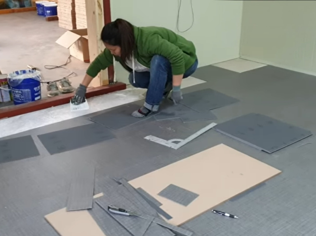 4. 본드가 꾸덕해지면 데코타일 시공을 시작한다.