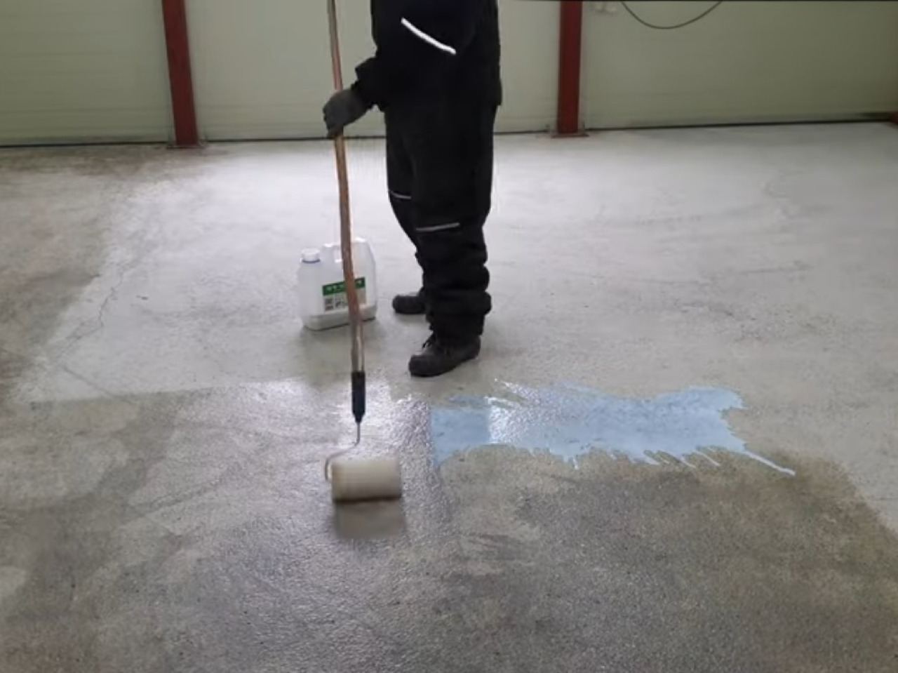 1차 도포 시 콘크리트가 프라이머를 쫘~악 빨아들이는 소리가 들린다. 자세히 들어보면 탄산음료 뚜껑을 열었을 때 나는 소리와 비슷하다. 도포량이 가장 많다. 그렇게 건조하고 2차 도포를 해주면 바닥에서 광이 난다. 그리고 완벽한 건조!!