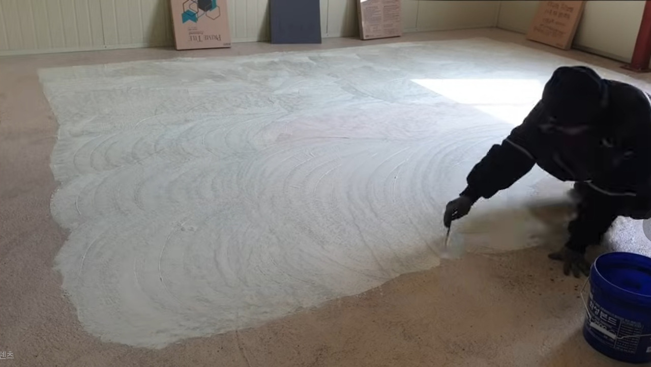 3. 프라이머 완전건조 후 데코타일 본드를 바른다.