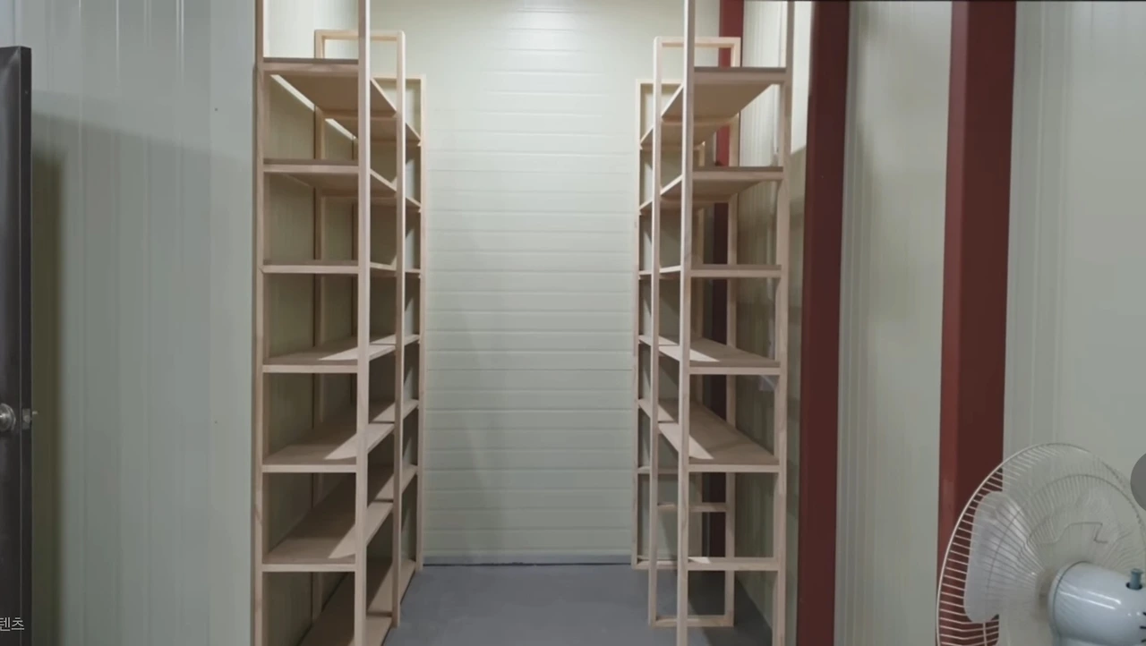 선반의 구조물을 숨기기 위해 무지주 선반으로 만들었다. 건물의 골조와 결합을 해서 정말 튼튼하다. 50kg까지 거뜬히 견딜 수 있다. 손님들이 찾아오시면 무지주 선반을 신기하게 둘러보며 말한다.