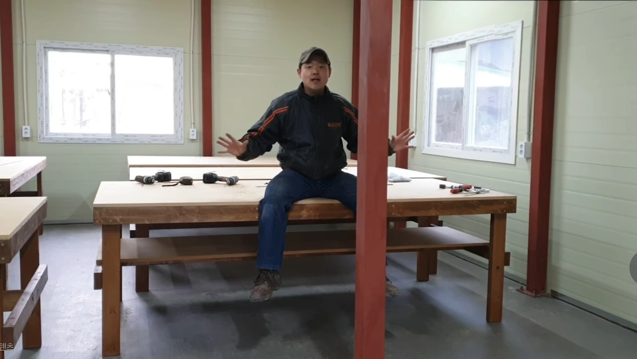 기존 공방에서도 목공체험이나 지도를 했었는데 장소가 협소해 여러모로 불편했다. 더 많은 사람들이 더 편하게 교육받고 활동할 수 있도록 48 사이즈 테이블을 5개 만들었다.