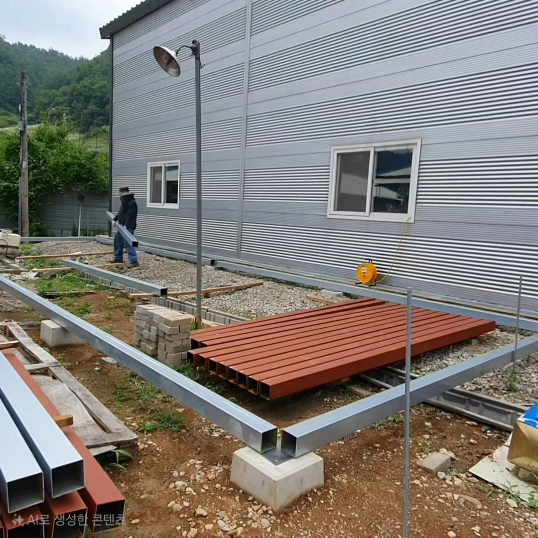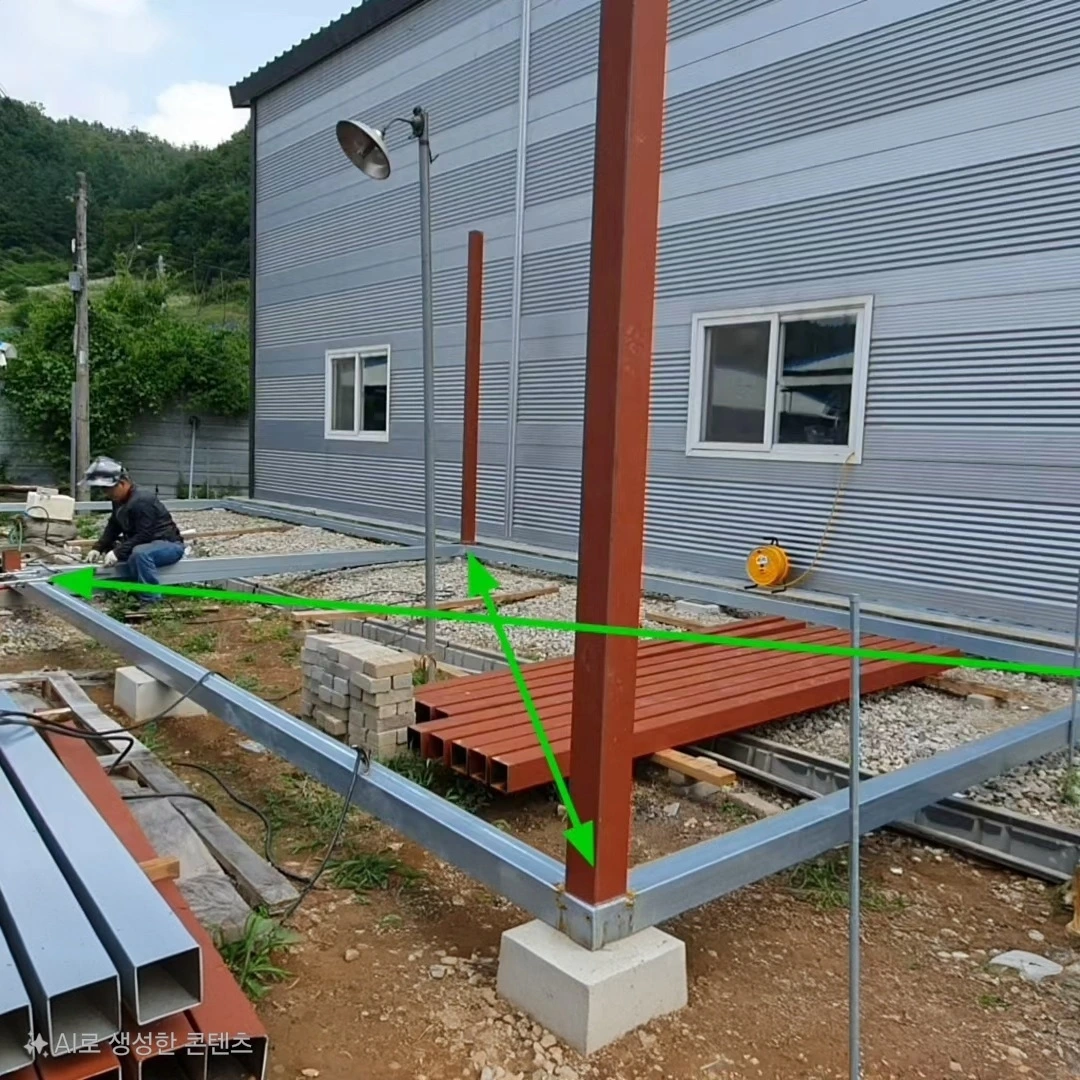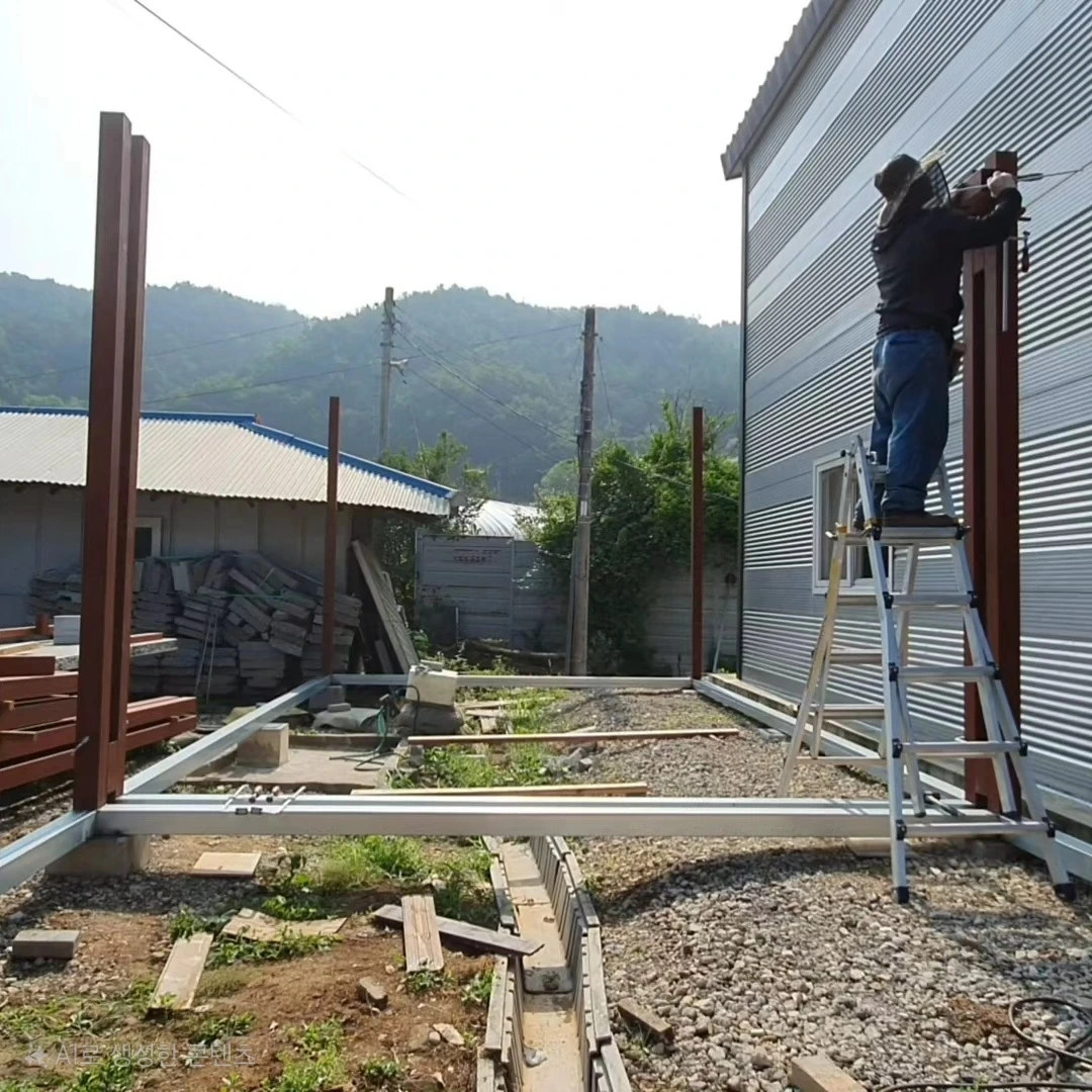 직각이 잘 잡힌 하부 사각틀 꼭짓점 부분에서 기둥을 수직 하게 세운다.