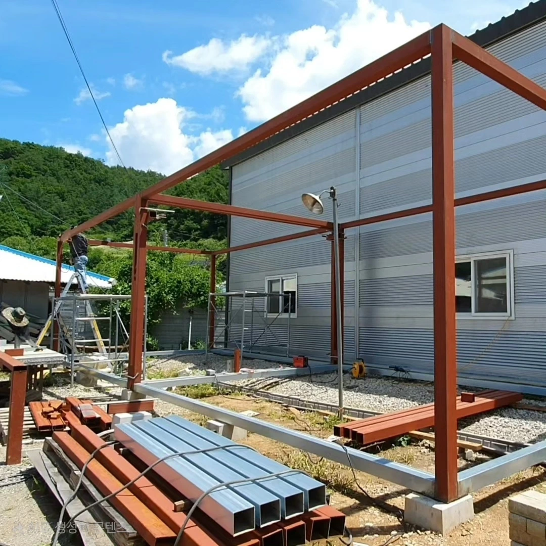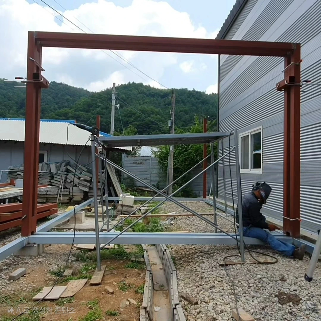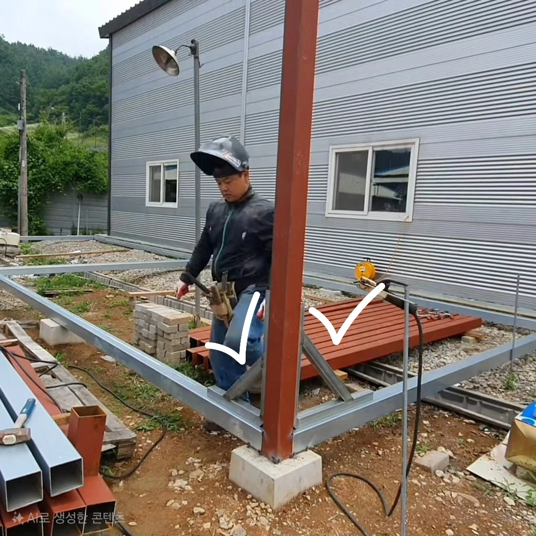 가용접으로 하부사각틀과 기둥과 상부사각틀을 접합시켜 임시로 형태를 잡은 후 본용접을 진행한다. 본용접은 인내심을 가지고 아래보기, 측면보기, 위보기를 하며 각관이 연결되는 전방향 모두 진행을 한다.
