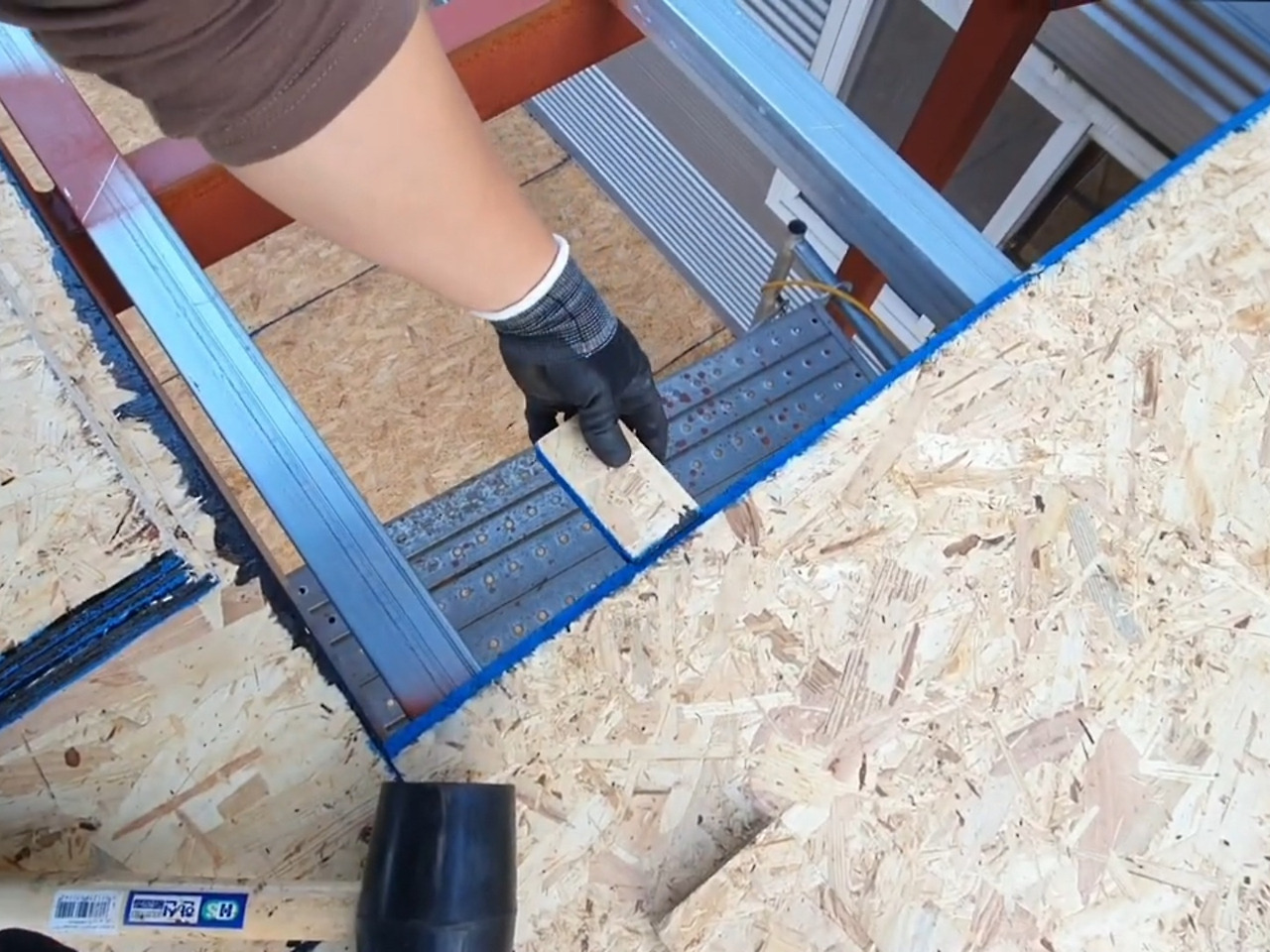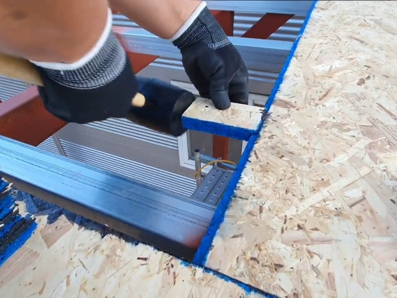 OSB는 목재다. 습기에 약하다. 그래서 연결부와 나사 체결부에 외장용 실리콘을 꼼꼼히 눌러 바르며 방수 준비를 했다. 이 작업은 곧 다가올 본격적인 방수 공정의 기초가 된다.