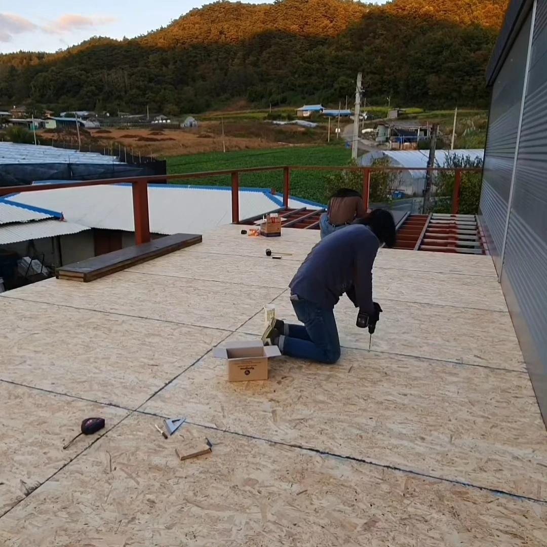 시공 과정은 여전히 힘들었다. 작은 보와 장선을 밟으며 판을 끼우고, 직결나사를 박는 일은 반복되는 위험과 긴장감의 연속이었다. 하지만 결국 한 장씩 쌓아 올리며, 드넓은 옥상 바닥이 눈앞에 펼쳐졌다.