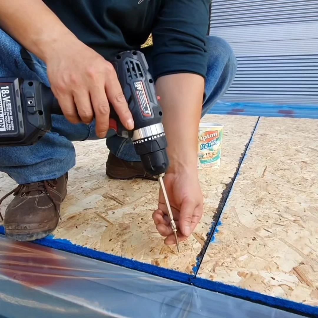 드디어 바닥을 깔 준비가 끝났다. 지난 이야기에서 바닥 습 차단 공정을 마쳤으니, 이제는 OSB 합판을 장선 위에 올려 직결나사로 고정하는 일만 남았다.