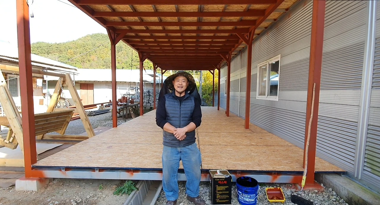 그렇게 바닥이 완성되고, 드디어 내가 꿈꾸던 야외 작업장의 시작이 가능해졌다. 이 창고를 지은 가장 큰 이유는 바로 철을 자르고 용접할 공간이 필요했기 때문이다.