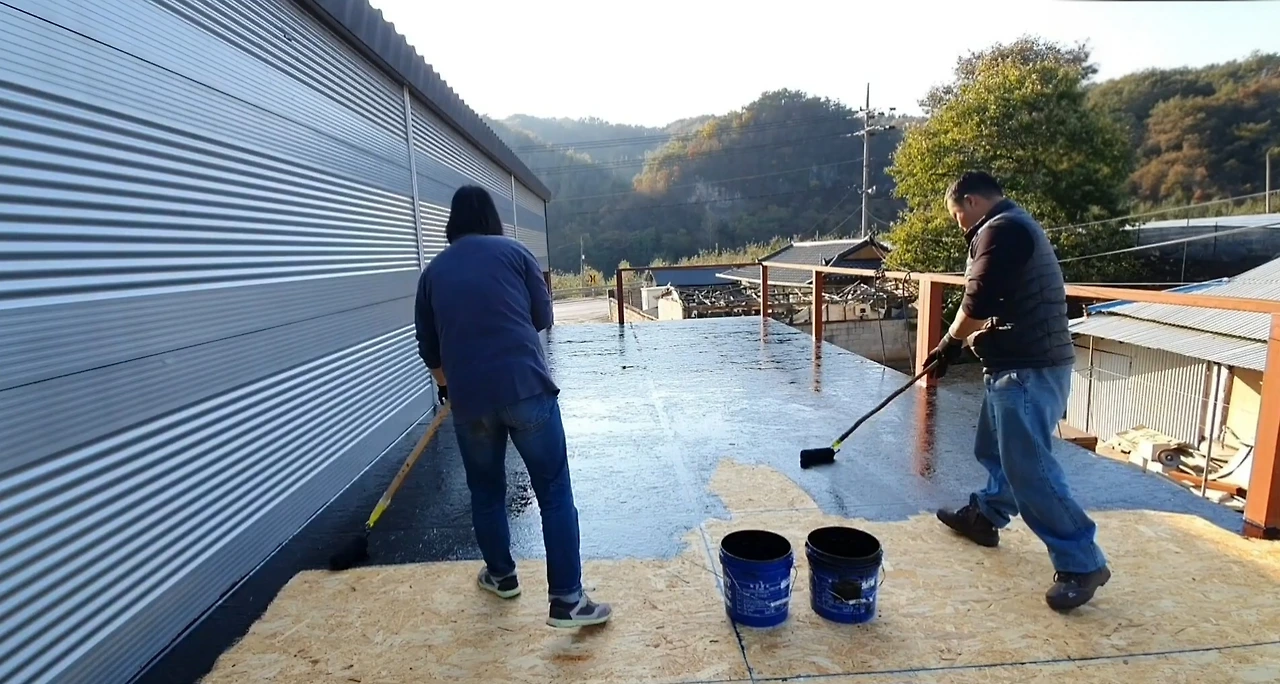 주의: 시공 온도는 반드시 영상 5도 이상이어야 한다. 기온이 내려가면 도료가 얼고, 막이 갈라져 누수가 발생한다.