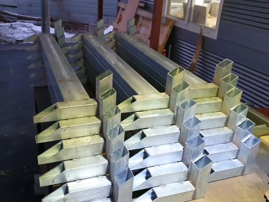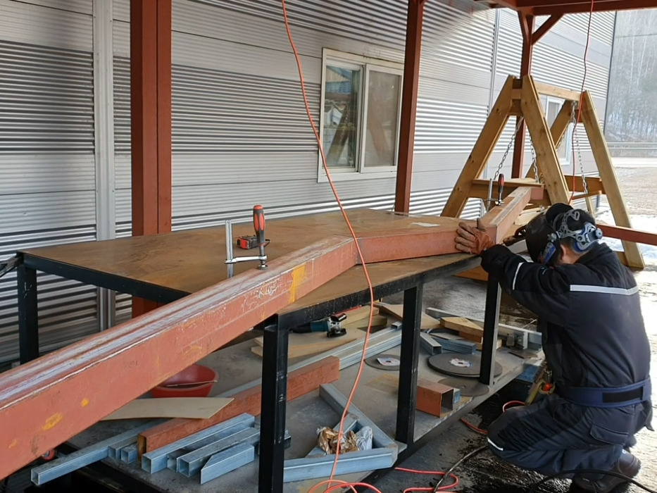 컷팅만 이틀, 용접으로 발판과 긴 보를 만드는 데 이틀. 총 4일간 꼬박 달려서 계단의 모든 부재가 준비됐다.