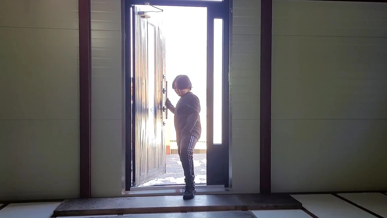 방금 설치된 현관문을 보더니 눈이 동그래져서 외쳤다.