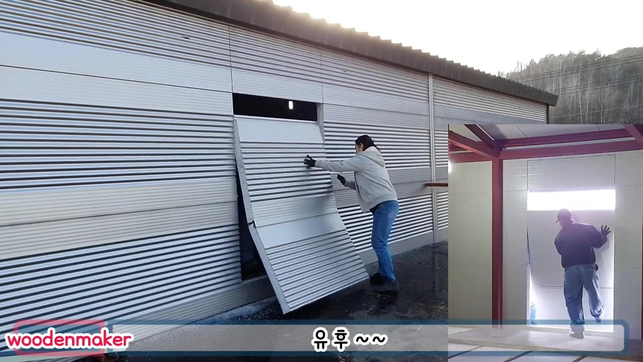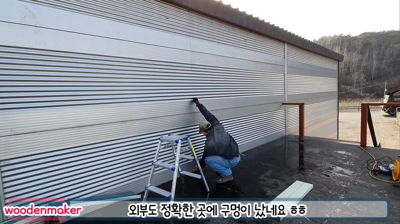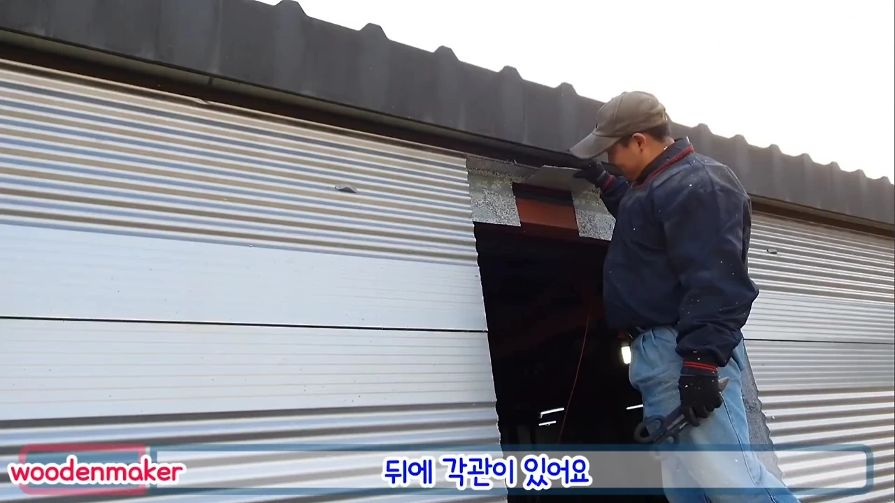 철판과 단열재를 제거하고 내부에서 외부 방향으로 푹—!