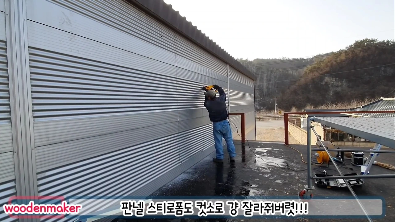 그라인더에 패널 절단 전용날을 끼우고, 선대로 철판을 잘라낸다.