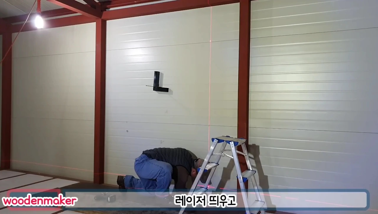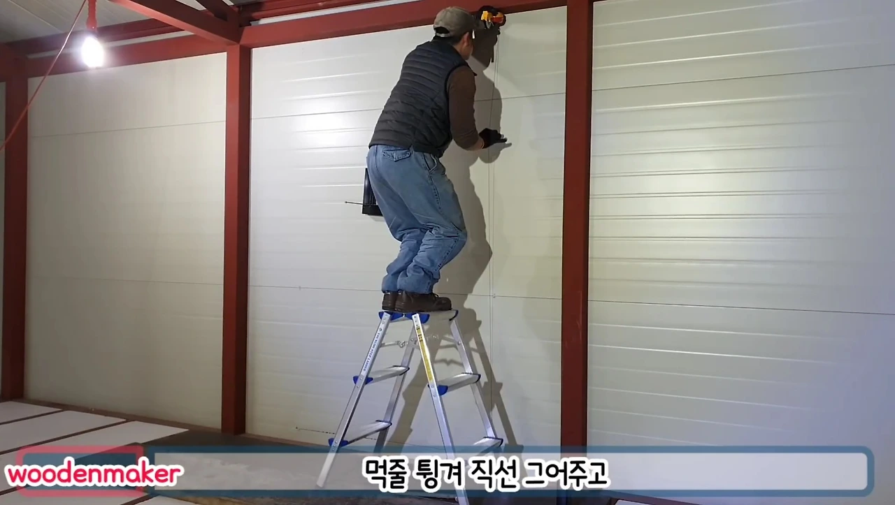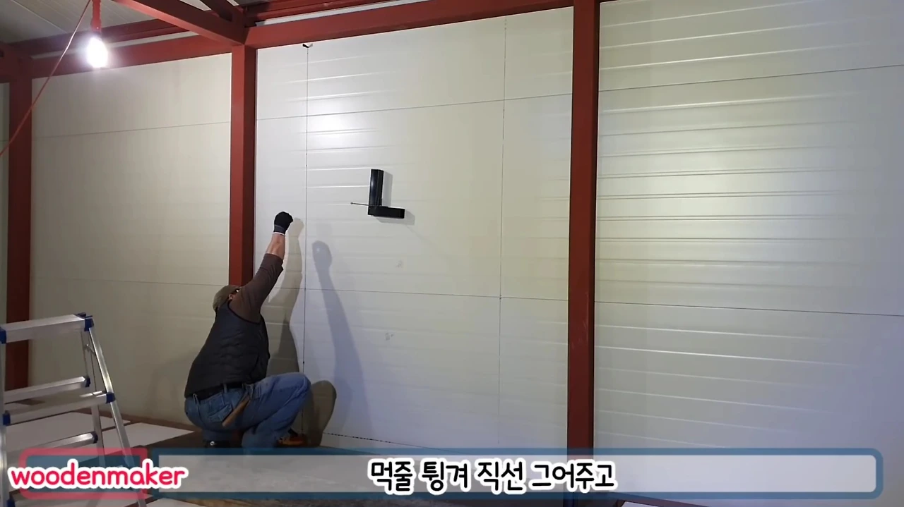 먹줄(요즘은 초크라인)로 팅! 하고 선을 긋는다.