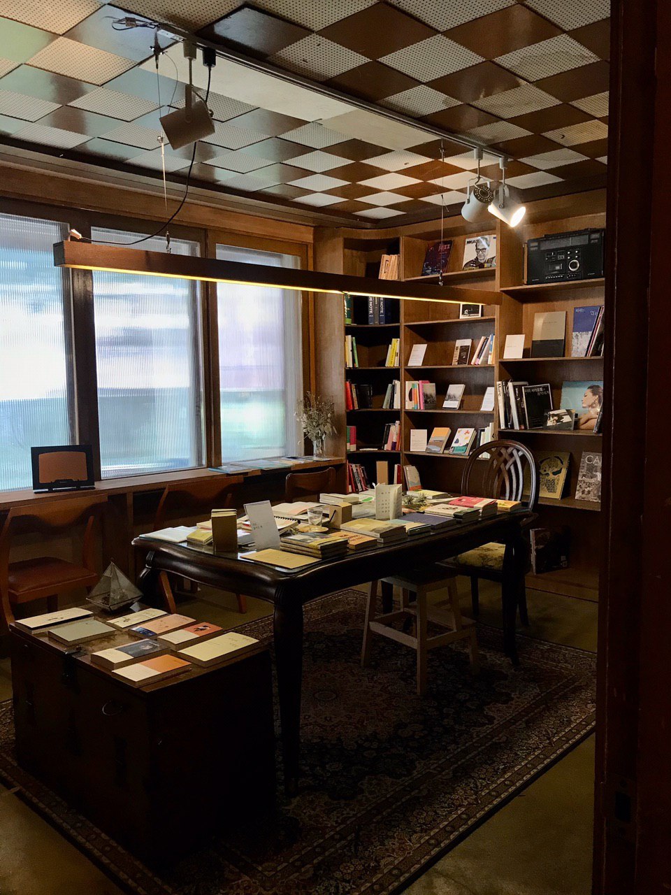 책을 다 고르고 거실에 해당하는 공간에 나오니 들어올 때 살펴보지 못했던 여러 오브제들이 눈에 들어옵니다. 사실 저는 서점 공간 밖으로 나오니 다시 조심스러워져서 일일이 살피진 못했어요. 이쯤 되면 소심도 병입니다. 그러나 와니가 제가 딴짓을 하는 사이 사진을 찍어줬습니다. 친구는 또다시 제가 못 보고 지나친 다른 면을 보여줍니다. 책을 꾸려주실 때 즉석으로 큰 도장 같은 롤을 굴려 봉투를 완성해주셨어요. 매번 찍을 때마다 다른 각도, 번짐, 빛깔이 나올 테니 이를테면 세상에 하나밖에 없는 라이너 노트 봉투라 할 수 있겠습니다. 여기는 브런치를 통해 알게 됐어요. 타인을 통해 세상이 넓어집니다.