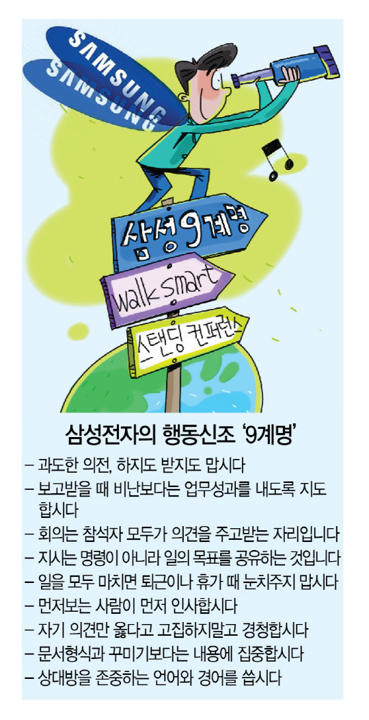 2016년 3월 24 ‘스타트업 삼성’을 선언하고 조직문화 바꾸기에 나선 삼성전자가 공개한 ‘9 계명’ (이미지 = 삼성전자)