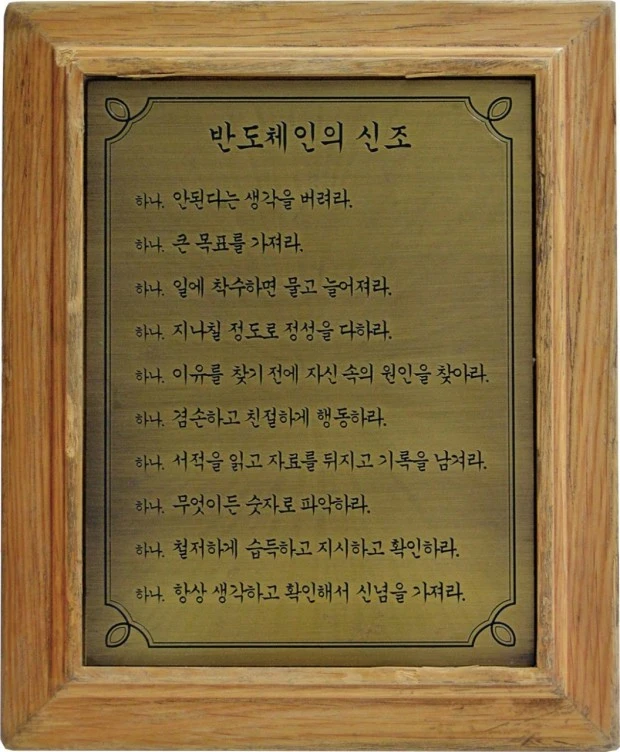 1983년 삼성전자가 첫 자체 개발 메모리 반도체에 도전할 당시 임직원들의 구호였던 ‘반도체인의 신조’ (이미지 = 삼성전자)