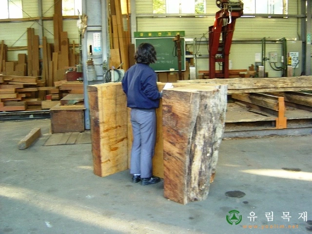 파푸아뉴기니산 크윌라 수종 통원목을 제재하여 만든 인포데스크