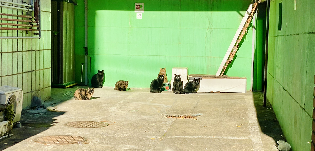추운 계절이 돌아왔다. 동네 고양이들은 월동준비를 마쳤는지 털이 쪘다. 토실토실해 보이는 몸이 귀엽다. 명학공원에는 고양이들이 산다. 멤버는 주기적으로 바뀐다. 사람들을 봐도 무서워하지 않는다. 먹이를 주고 잘 챙겨주는 주민들의 영향인 것 같다. 길 건너 만안구청에는 작은 고양이 급식소가 있다. 동네 미용실은 7마리의 고양이를 돌보는 중이다. 주차장 뒤편에 일렬로 놓인 밥그릇과 물그릇이 인상적이다. 볕 좋은 날만되면 안양8동에 사는 길고양이들은 일광욕을 즐긴다. 지붕 경사면에 누워서 눈을 감고 조는 모습이 편안해 보였다.