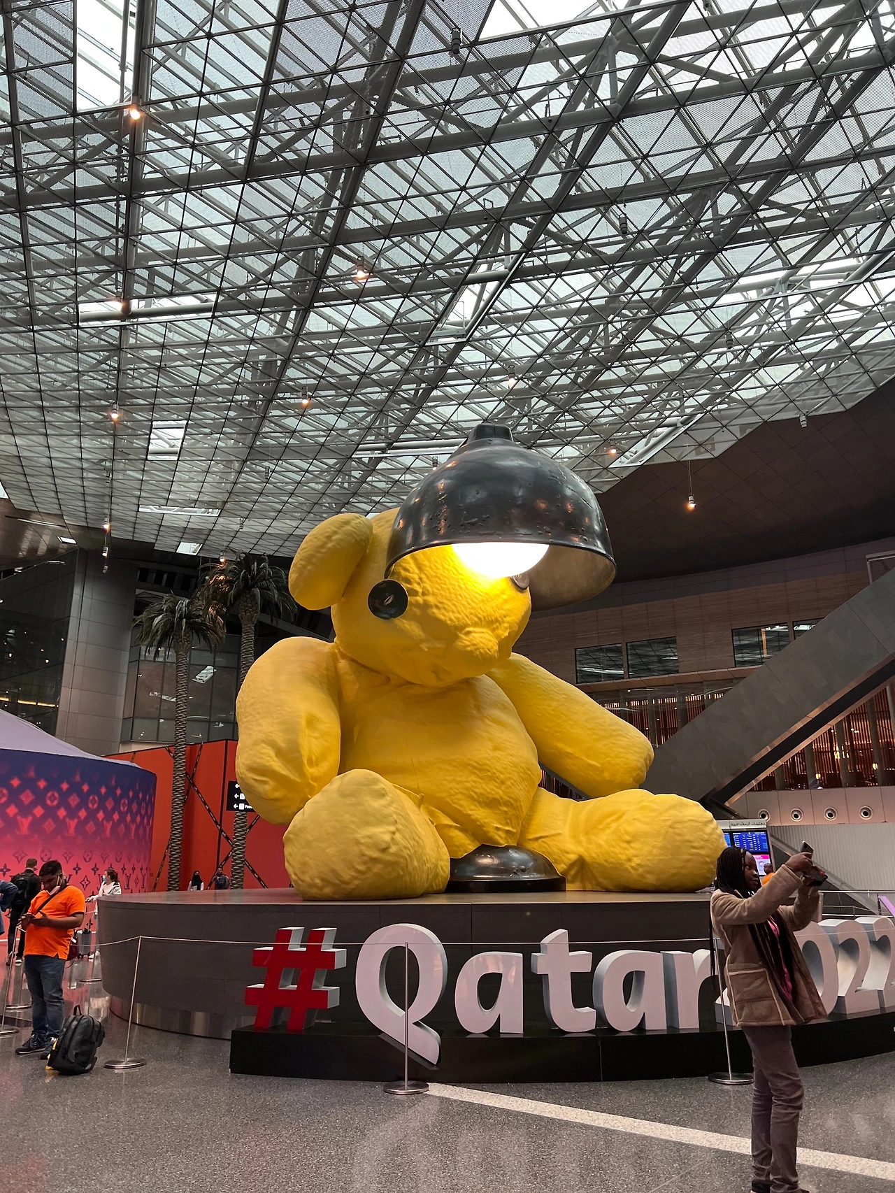 카타르 도하공항의 명물 노란곰탱이 :)도하공항은 북적대는 사람들로 가득했다. 특히 귀금속 매장과 초콜릿 매장, 히잡 판매점이 눈에 띄었다.