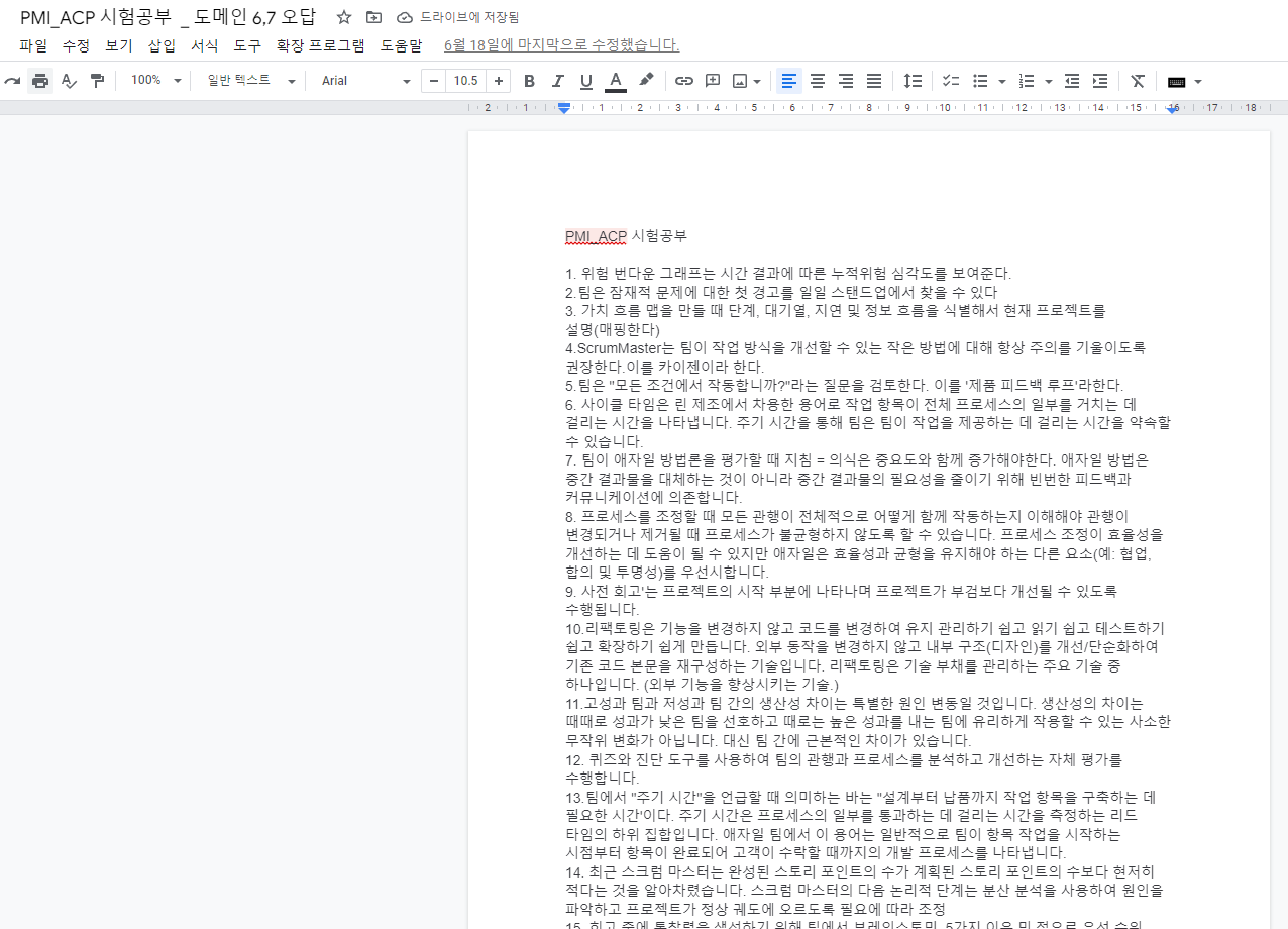그리고 나서야 PMI-ACP 시험이 다시 보이게 되었다. 그리고 각 지식 영역을 하나씩 다시 공부하게 되었다.
