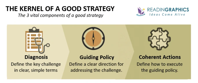 전략 그 자체의 완성도를 높이는 것은 중요하지 않다. 현재의 문제를 제대로 진단하고 원인을 해결하기 위한 가이드를 짜고, 집요하게 수행해야한다. 화려한 미사여구도, 100장짜리 PPT도 필요없다.