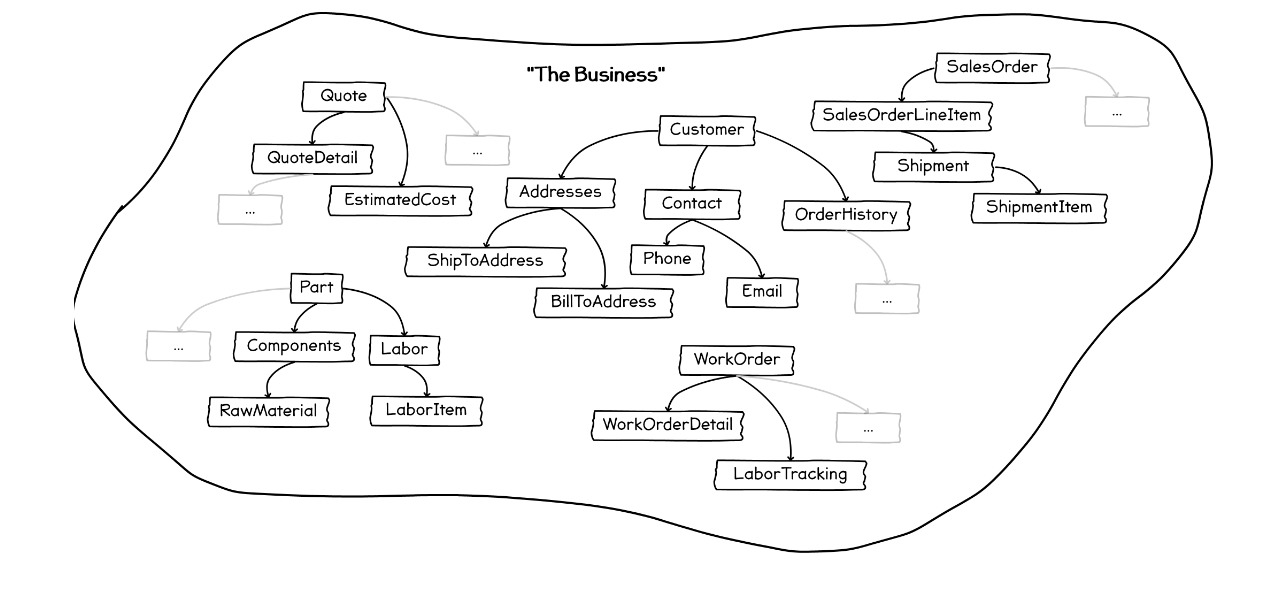 (DDD에서는 Bounded Context 개념으로 설명한다. 하나의 도메인 내 의미가 일관되는 논리적 결계를 뜻한다. 예를 들어 Order라는 개념은 고객 컨텍스트에서는 '주문상태' 지만 물류 컨텍스트에서는 '배송경로'이며, 재고 컨텍스트에서는 '재고 감소'를 의미할 수 있다)