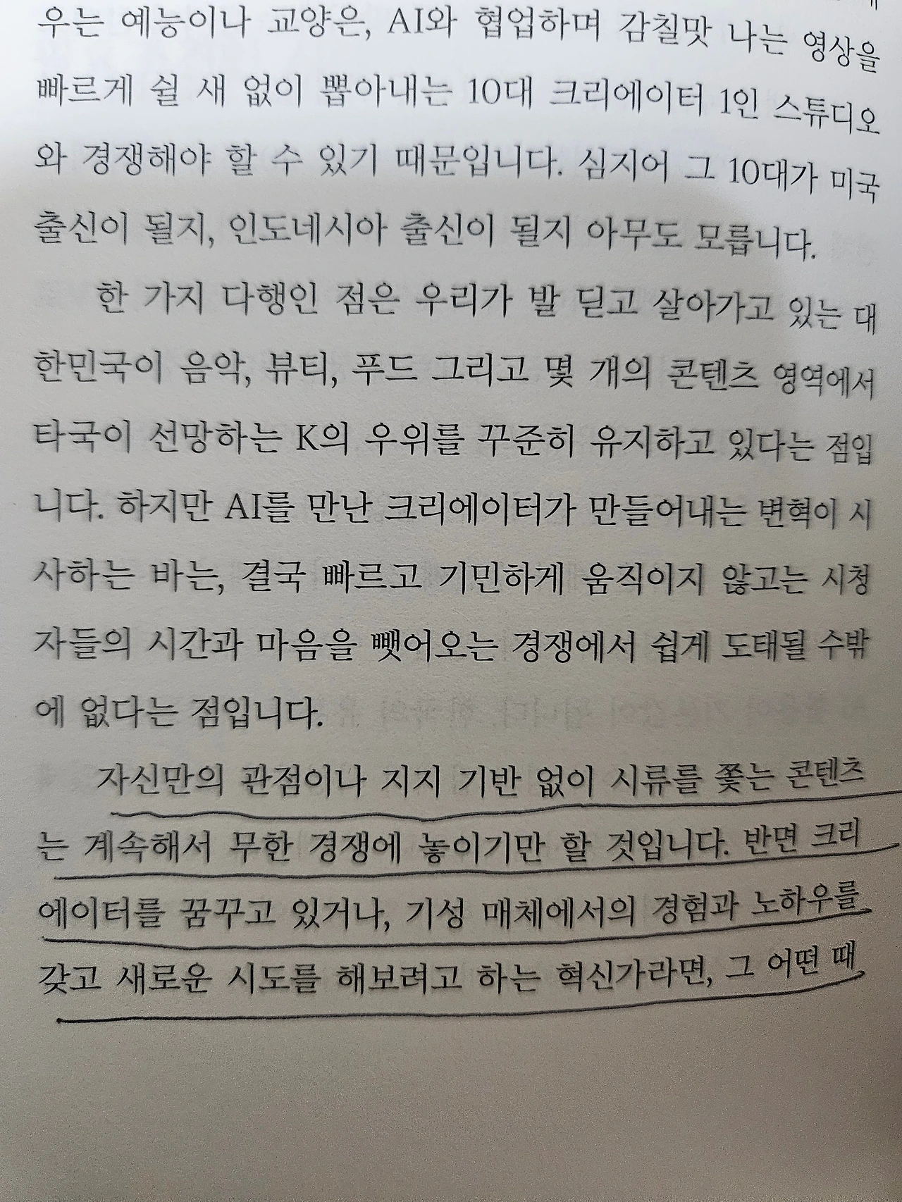 정보통신 시대를 거쳐 AI 시대가 도래하면서 문명의 패러다임은 완전히 바뀌었다. 이제 공간의 제약 없이 언제, 어디서든, 누구나 접속하고 창조할 수 있으며, 스마트폰 하나로도 사업이 가능한 시대가 열렸다. 사람들은 AI 에이전트로 대체되고, AI용 반도체 시장은 호황을 이루고 있다. 빠른 변화에 적응하지 못하면 하루아침에 경쟁력을 잃는 급속한 전환의 시대다.