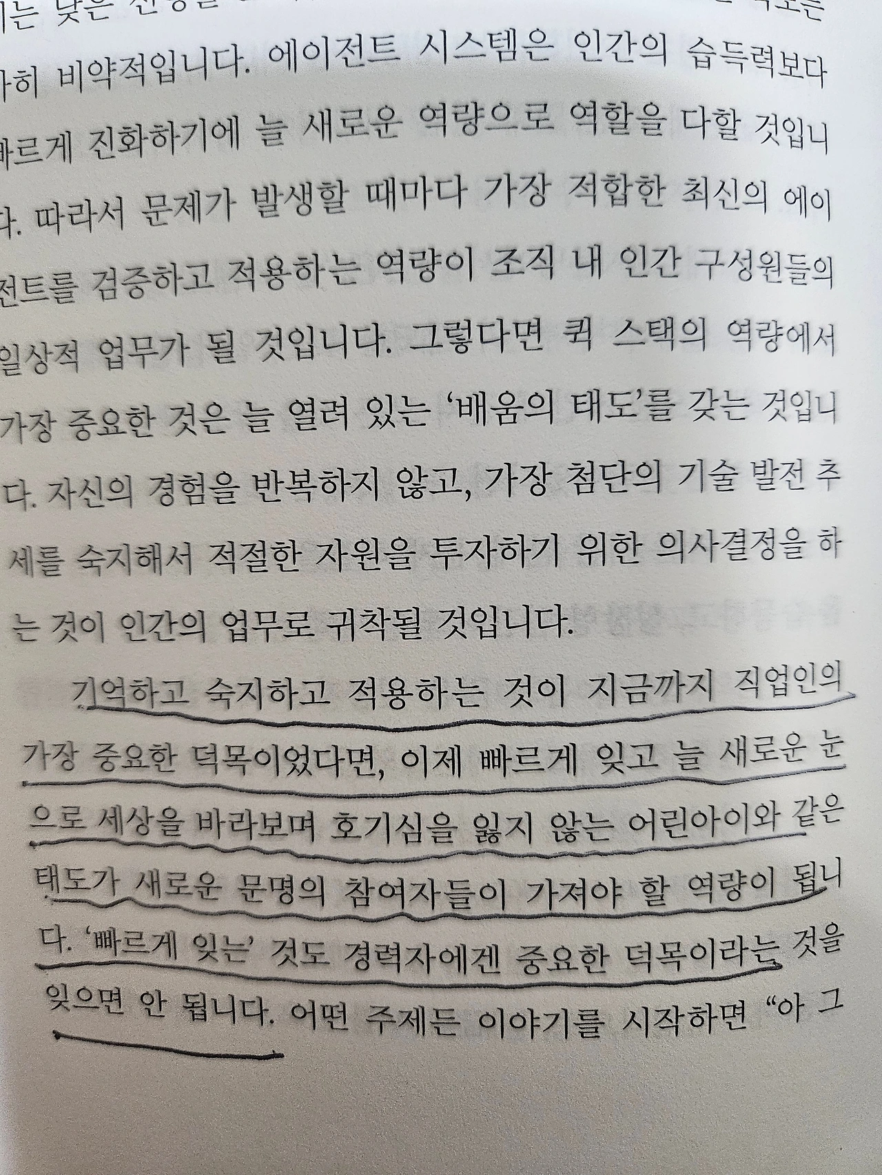 경량문명 시대를 살아가기 위해서는 유연하게 변화를 수용하고 필요한 툴을 적극적으로 활용해야 한다. 과거에는 뒤처짐의 이유가 지식 부족이나 좋은 대학을 나오지 못한 것, 배움이 부족한 것이었다면, 지금의 뒤처짐은 기술 변화에 적응하지 못하고 새로운 툴에 도전하지 않는 것을 의미한다.