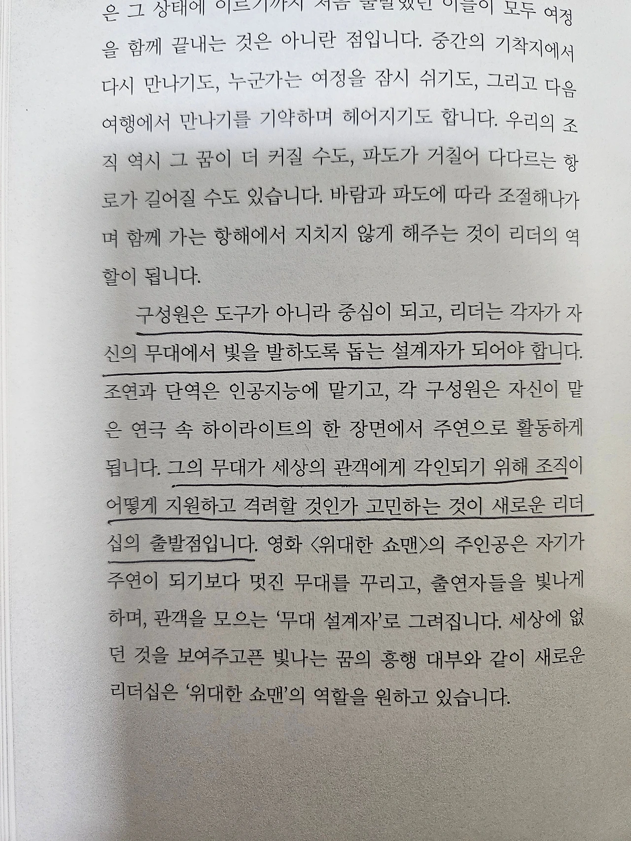 이런 시대에는 가볍고 유연하며 빠르게 전환하면서 변화의 파도를 이해하고, 세상과 더 넓게 연결된 삶을 살아가야 한다. 과거의 고정관념을 던져버리고 우리가 접해보지 못한 세계를 수용하려는 노력이 필요하다. 조직도 과거의 형태를 탈피하여 유연하게 변화를 추구할 수 있는 구조로 거듭나야 한다.