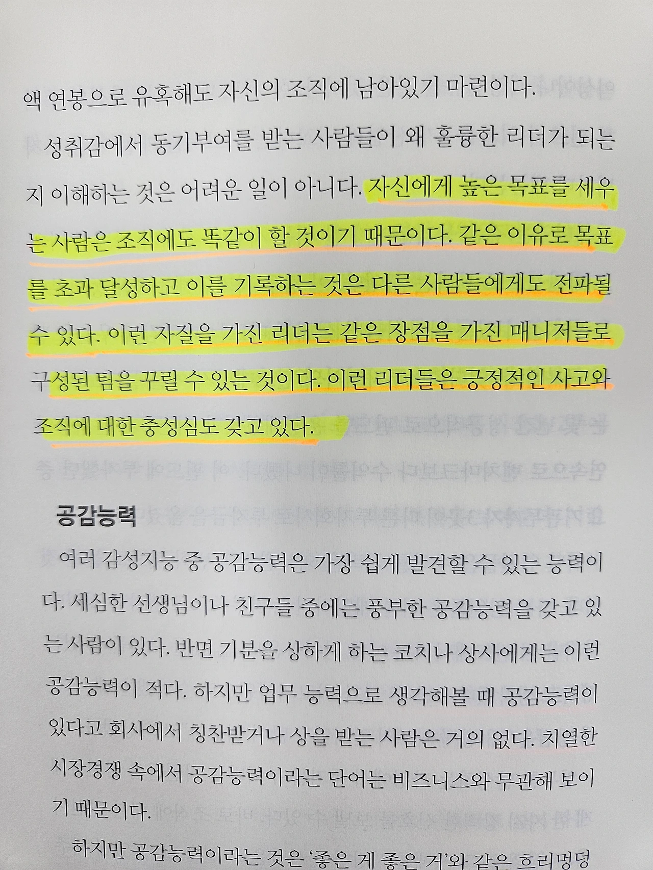 챕터 1에서는 가장 효율적인 리더들은 한 가지 중요한 부분에서 공통점을 가지고 있다고 한다. "감성지능 emotional intelligence"이 높다는 것이다.