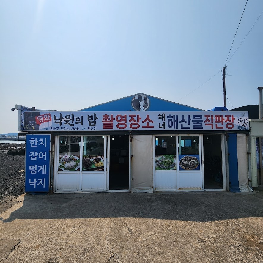 이곳에 동복해녀해산물직판장이 있다. <낙원의 밤>에서 태구와 재연(전여빈)이 함께 물회를 먹던 곳이다. 가게 간판에 아예 <낙원의 밤> 촬영 장소라고 써붙여 놓았다. 물회를 좋아했던 재연은 이곳이 조용해서 좋다 했지만, 재연이 죽고 난 뒤에 이곳은 나같은 육지 사람들도 더러 아는 곳이 됐다. 평일 점심 시간을 살짝 넘겨 도착했는데도 웨이팅을 할 정도는 아니지만 사람들이 꽤 있다.