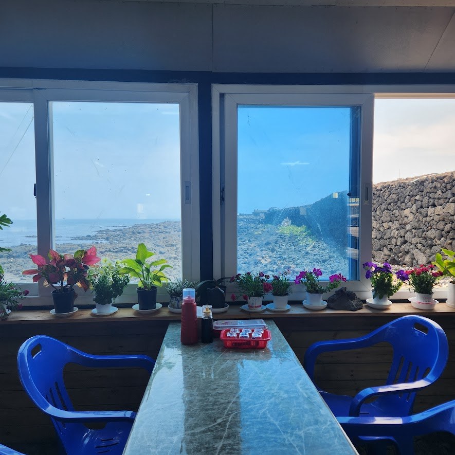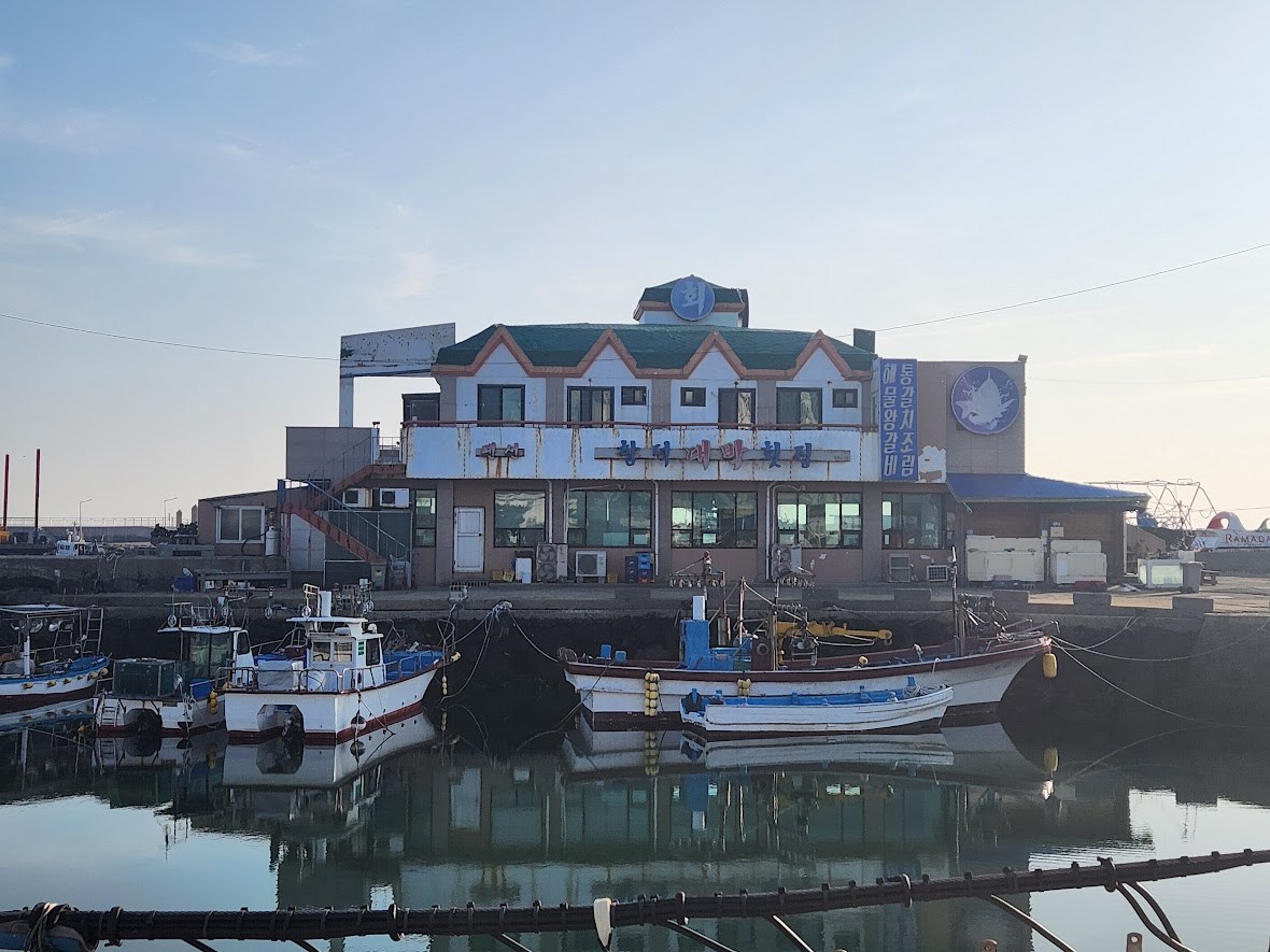 그런데 여기, 꼭 영화에 나오지 않았더라도 언젠가 이름이 알려질 곳이었다. 실내에서 약간 더 바닷가 쪽으로 공간을 내어 비닐로 천장을 덮어둔 자리 쪽으로 사람들이 붙어 앉는 이유가 있다. 바다 뷰와 노포 감성이 끝장이다. 바닷가 포장마차 느낌이다. 영화에서 태구가 아슬아슬하게 음주 단속을 피해간 이유를 알 것 같다. 경찰의 짐작처럼 술을 입에 대기만 해서가 아니다. 주당들 공기 좋은 곳 가서 한 잔 하면 꼭 "이런 곳에서 마시면 안 취한다" 하던 말이 틀리지 않은 것이다. 영화에서는 가게에서 볼 수 있는 바다 뷰를 제대로 보여주지 않았었다.