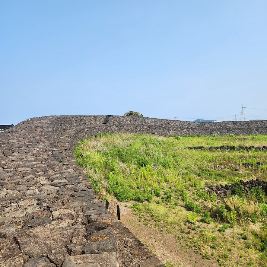 여기까지 왔는데 식당만 다녀가기가 허전하다면 아주 가깝지는 않아도 <계춘할망>(창, 2016) 촬영지를 추천드린다. 해안도로를 따라 바다를 왼쪽에 끼고 쭉 가다가 세화포구에서 꺾어 들어가면 얼마 안 가 하도포구가 나오는데, 이곳에 별방진이 있다. 영화에서 혜지(김고은)이 서울에 두고 온 친구 민희(박민지)와 통화하던 곳이고, 한이(최민호)를 처음 만났던 곳이다. 돌담을 쌓아 올려 마을을 둘러싼 성곽인데, 극중 혜지처럼 말 못할 답답한 일이 있거나 깊이 생각할 고민이 있으면 바다를 보고 멍때리며 앉아 있기에 딱이다. 꽃을 좋아하는 제주 관광객들에게는 3월 유채꽃 명소로도 알려져 있다. 다만 다소 높이가 있는데 난간이 없어서 신발은 구두나 슬리퍼보다는 잘 미끄러지지 않도록 운동화가 좋겠다. 아이나 노인처럼 거동이 불편한 분이라면 성곽을 오르내릴 때 특별히 주의할 필요가 있다.