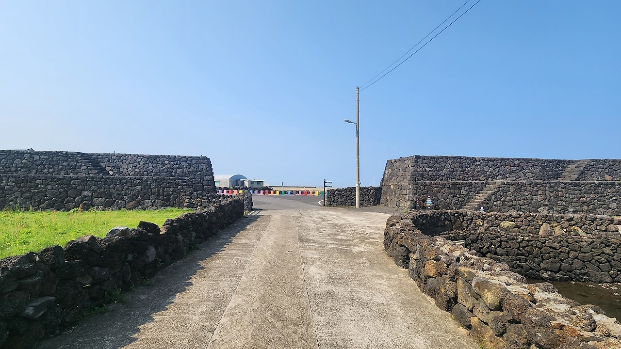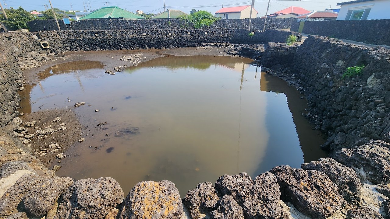영화에서 별방진만큼이나 호기심을 자극하던 곳은 성곽 바로 안에 있다. 바닷돌을 쌓아 둥글게 만들어둔 곳인데, 영화에서는 혜지가 이곳에서 해녀가 말리고 있던 가사리를 밟아 혼이 났었다. 나는 처음에 이곳의 용도와 이름을 모르고, 그저 마을 안으로 들어온 바닷물이 빠져나가도록 만든 곳이려니 짐작했다. 산굼부리에 있는 해녀 갤러리에서 나중에 알게 된 사실인데 이름이 불턱이다. 해녀들이 옷을 갈아 입으며 휴식을 취하는 장소라고 한다. 이공이오공칠일일.