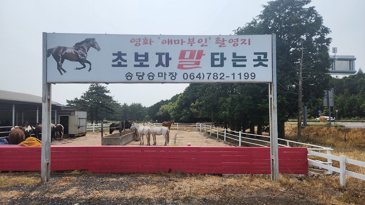 동선상 가장 가까운 곳은 송당승마장이다. 주차장 간판에서부터 이곳이 <애마부인> 촬영지임을 알 수 있다. 열 편도 넘는 시리즈로 개봉하며 우리 에로영화사에 전설로 남은 <애마부인> 촬영지에서 실제로 말을 타볼 수 있으니 진귀한 경험이다. 관광객 입장에서는 흔한 승마 체험장 중 하나겠지만 영화 팬에게는 은밀한 성지인 것이다. 하지만 여기서 정확하게 해두어야 한다. 이곳에서 촬영한 영화는 1982년에 개봉한 1편이 아니라 <애마부인 2>(정인엽, 1984)이다.