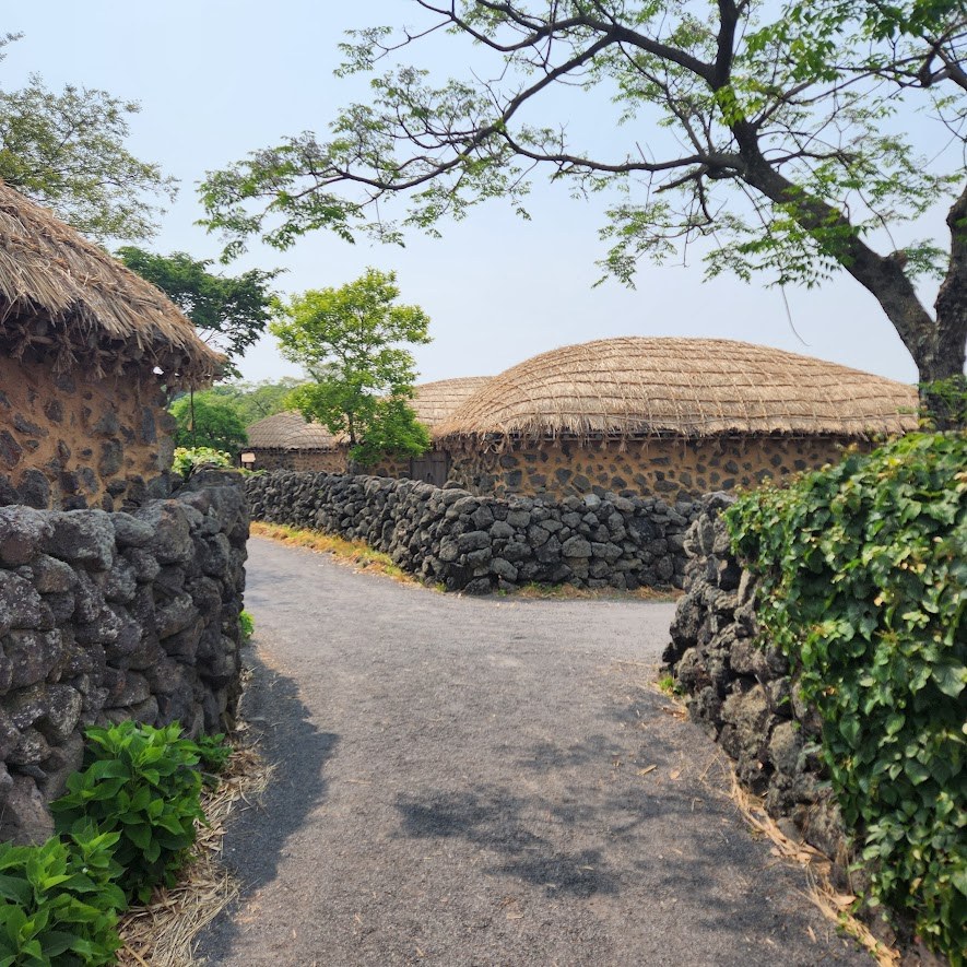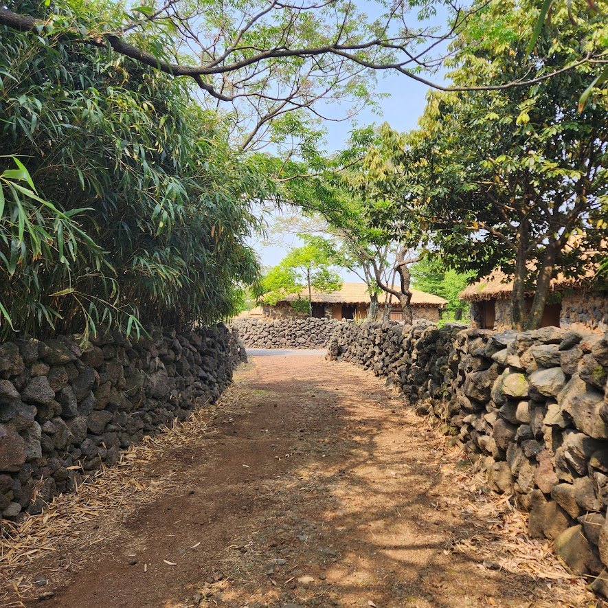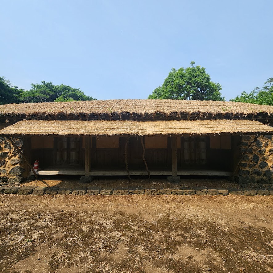 큰넓궤 옆에 형제굴처럼 붙어 있는 도엣궤까지 둘러보고 나와 제주돌문화공원 안에 있는 제주전통초가마을로 이동한다. 이곳을 답사하던 무렵엔 넷플릭스 드라마 '폭싹 속았수다'가 큰 인기를 얻었는데, 이 드라마에서 어린 애순과 관식이 자랐던 유년시절의 제주 마을을 여기서 촬영했다. 실제 사람이 살던 초가마을을 원형 그대로 보존하고 있는 곳이다. 제주민속촌, 성읍민속마을과 함께 둘러보면서 제주 전통 생활 문화를 가늠해보기에 좋다. 내가 갔을 땐 마침 수요일이어서 무료로 관람할 수 있었다. 다른 날엔 어른 1명에 5000원을 받는다.