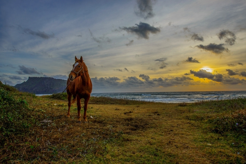 새롭게 시작하는 해는 ‘붉은말의 해’라고 한다. 말의 해가 돌아오기를 기다리며 묵혀 두었던 사진이 떠올랐다. 무려 10년이다. 이 사진은 성산을 배경으로 한 일출 촬영을 하려다 우연히 얻어걸렸다. 성산 바다에 떠오르는 붉은 태양의 모습을 상상하며 찾아갔지만, 늘 그렇듯 완벽한 일출은 3대가 덕을 쌓아야 한다고 했던가. 어정쩡한 해돋이 사진에 실망하고 돌아서던 그때, 바닷가 풀밭에서 풀을 뜯는 말이 눈에 들어왔다.