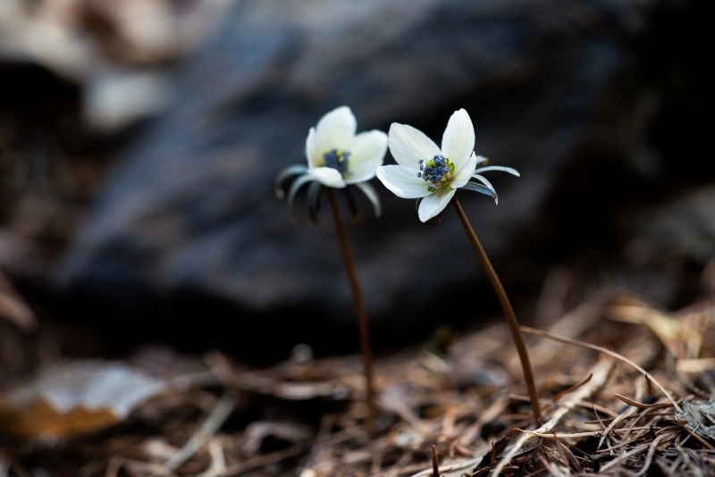 변산을 다녀오고 나서 이틀 정도 지나 경기도의 한 자생지를 찾았다. 도심과 인접해 있는 이 자생지는 등산을 위해 많은 사람이 찾는 곳이기도 했다. 2007년 당시만 해도 변산 바람꽃을 보려고 오는 사람은 많지 않았다. 계곡을 따라 흐드러지게 핀 변산바람꽃을 만나는 기쁨은 상당했다. 2014년 다시 찾은 자생지는 꽃이 거의 없었다. 대신 진입로에 데크가 설치되고, 자생지를 알리는 커다란 현수막이 걸려 있었다. 계곡을 따라가 보니 겨우 숨 붙어 있는 한 송이를 놓고 몇 명이 줄 서서 촬영을 기다리고 있었다. 포기하고 발걸음을 돌렸다. 한숨이 나왔다. 그 발걸음 중, 손 타지 않은 두 송이를 만났다. 누가 볼세라 조심스레 몇 장 찍고 부리나케 자리를 떴다.