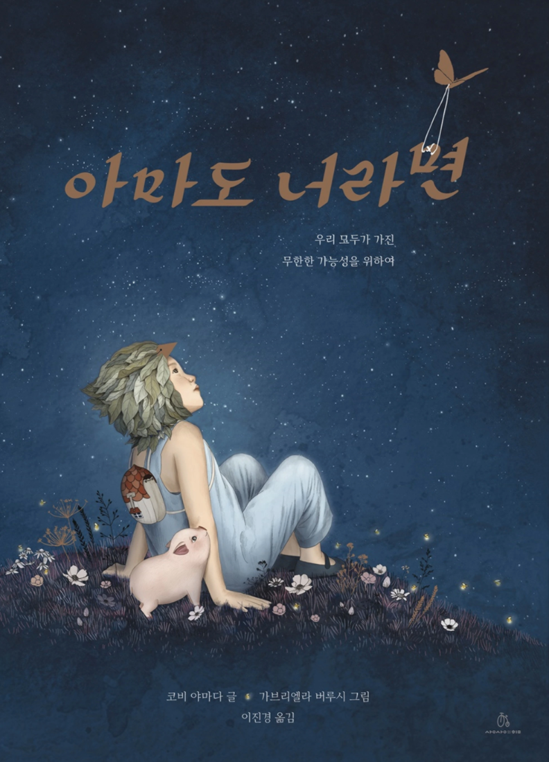 Maybe 책은 우리나라에 작년 2020년 9월, 이진경 교수님을 통해 "아마도 너라면"이라는 한국어 제목으로 소개되었다. 나는 이 책을 처음 원서로 읽었던 터라 어떻게 번역이 될지 정말 궁금했는데 번역이 원래의 의미를 너무 잘 담아내어 기뻤다. 글과 그림이 너무도 아름답게 어우러져 서로를 더 빛나게 한다. 책의 주인공인 듯 보이는 이 아이는 꼭 숲에서 온 것 같은 모습을 하고 있다.