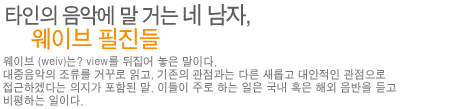 : 리뷰는 한 마디로 남의 음악에 자기 것인 양 말 걸어보는 작업이 아닐까?