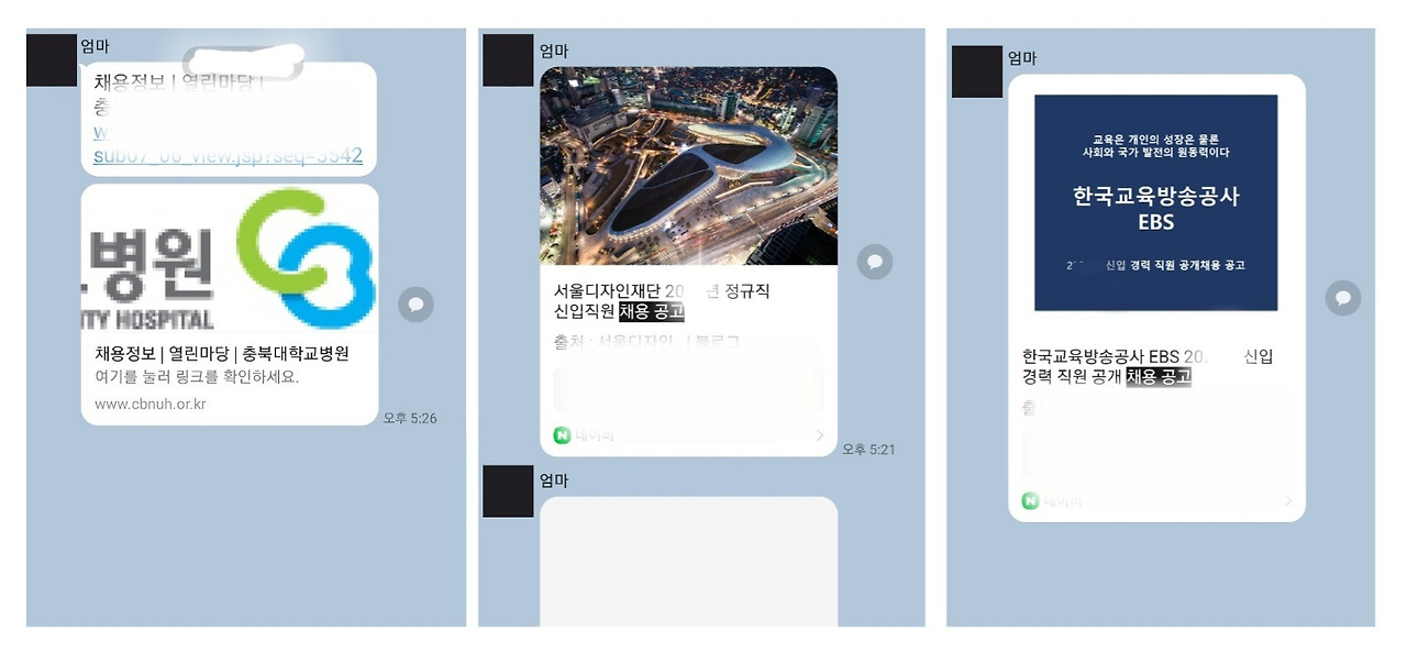 너무 솔직한 게 문제였던 걸까. 겨울에 접어들 무렵, 엄마는 카톡으로 채용 공고 사이트 링크를 보내기 시작했다.