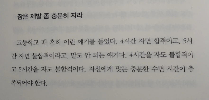 절대 잠을 줄이지 마라. 잠을 줄이는 순간 당신의 수험생활은 길어진다.