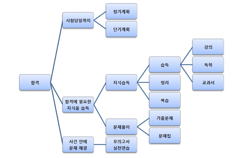 어떤 일을 계획할 때 항상 골, 목표에서부터 생각하는 것이 중요하다. 우리가 시험공부를 하는 이유는 시험에 합격하기 위해서인데, 합격을 하기 위해서는 무엇이 필요할까?
